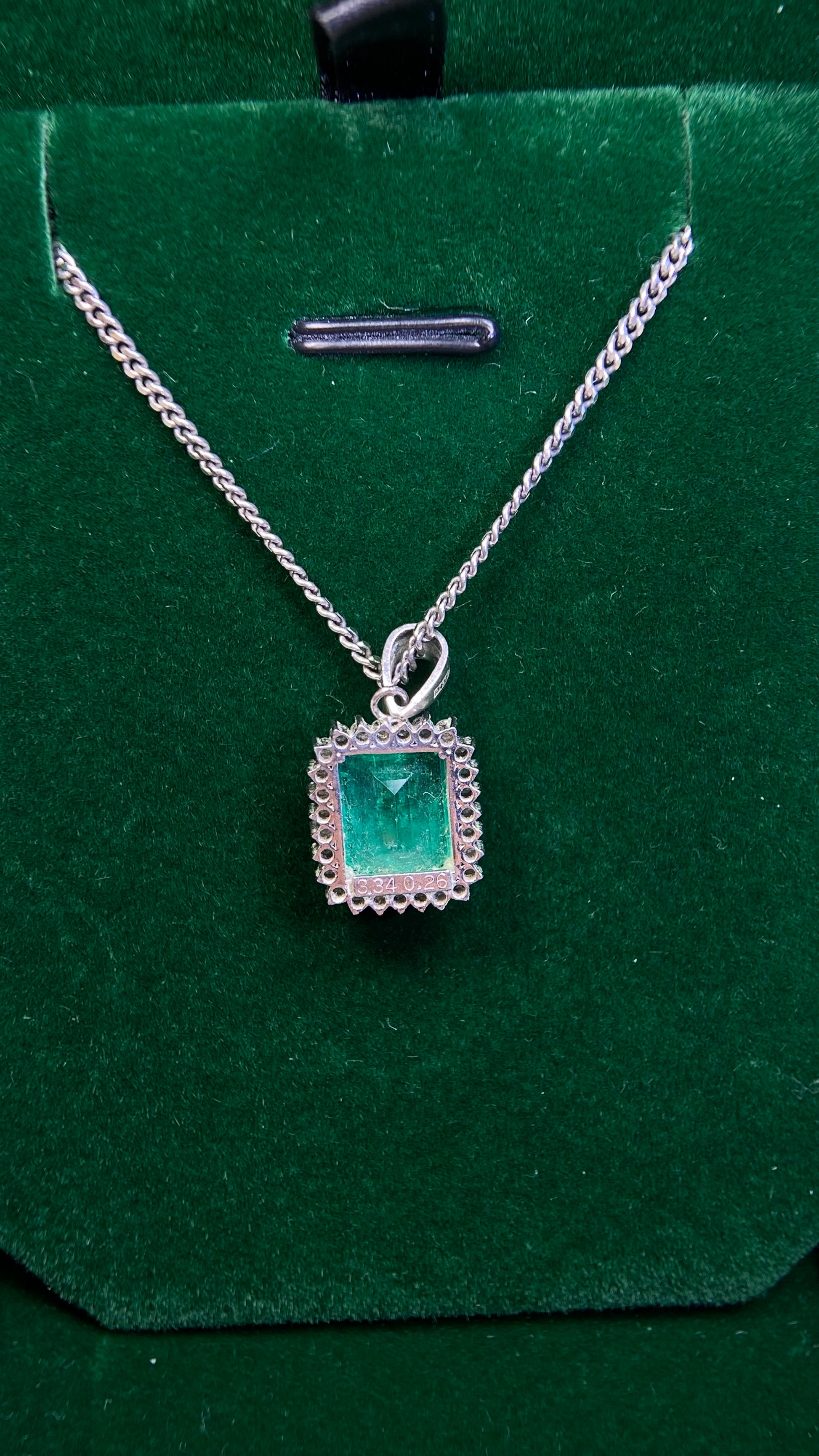 Pt900 platinum&Emerald&Diamond Necklace| Emerald: 3.34ct|Diamonds:0.26ct|Japanese Vintage Estate Jewelry -BMGY