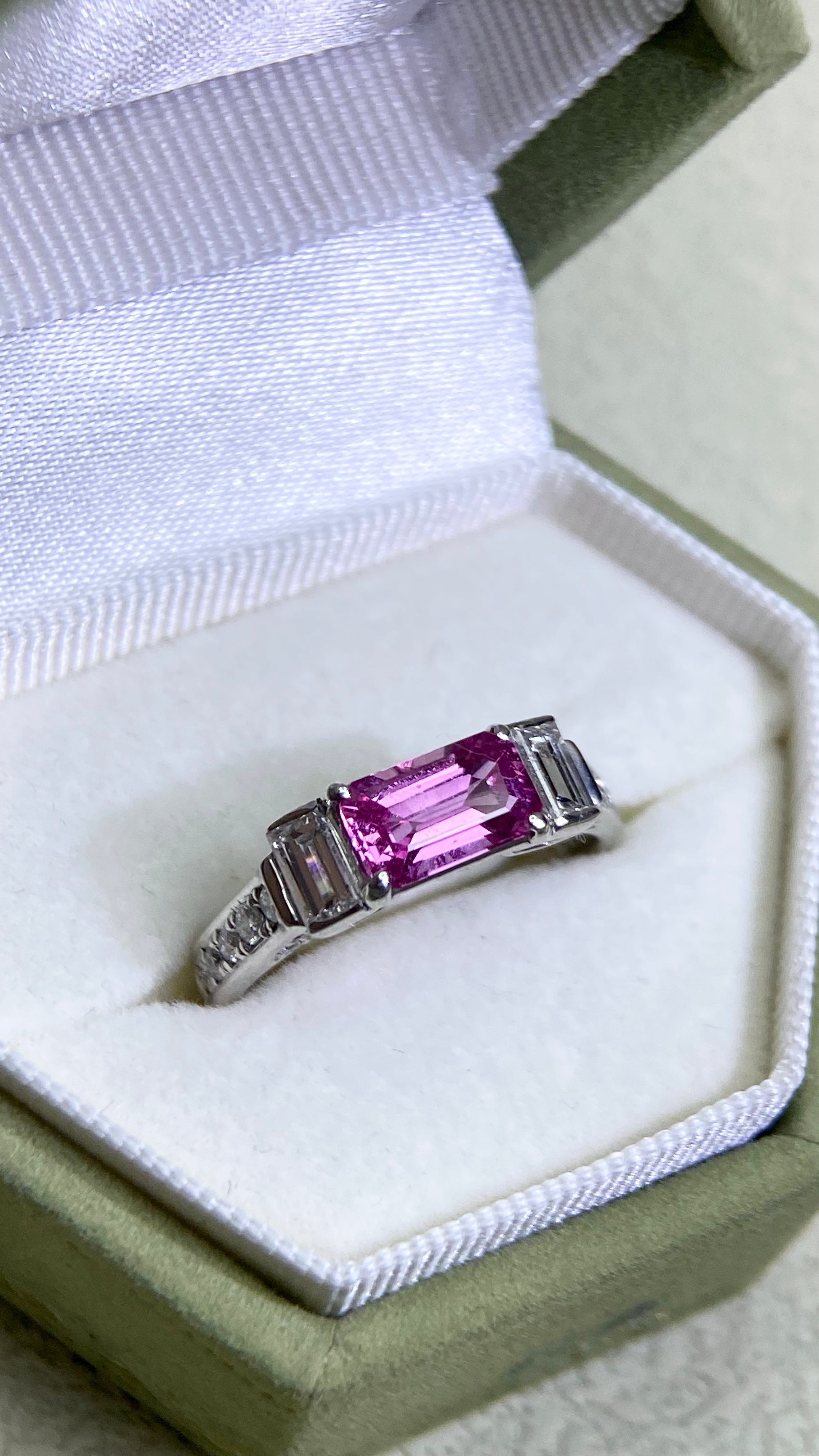 Pt900 Platinum&Pink Sapphire and Diamond Ring | Sapphire 1.234ct | Diamond 0.65ct | Japanese Vintage Estate Jewelry-AGPB