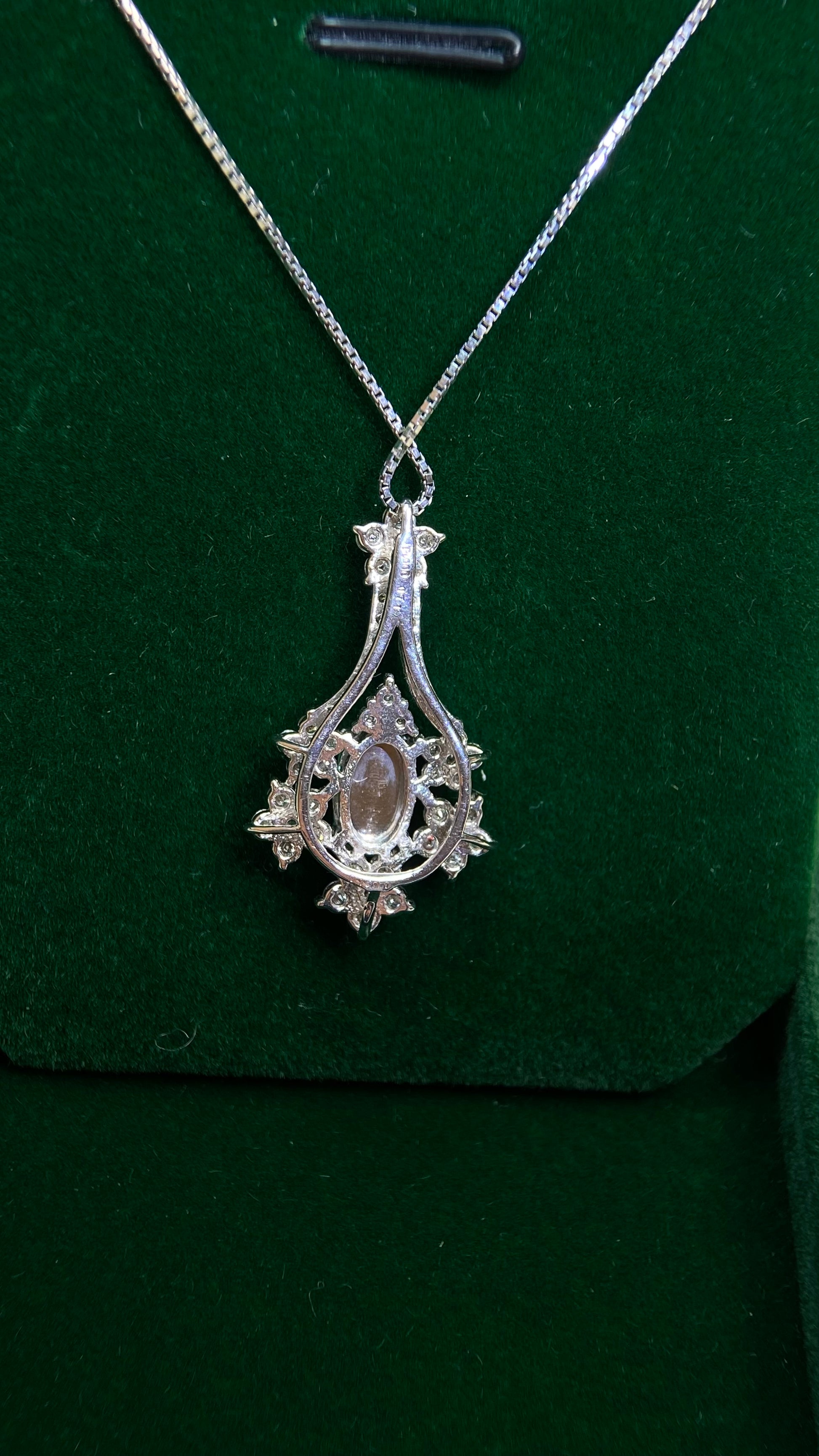 Pt900 platinum/Pt850 platinum&Emerald Cat’s eye&Diamond Necklace| Emerald Cat’s eye : 0.71ct|Diamonds:1.00ct|Japanese Vintage Estate Jewelry -BLPL
