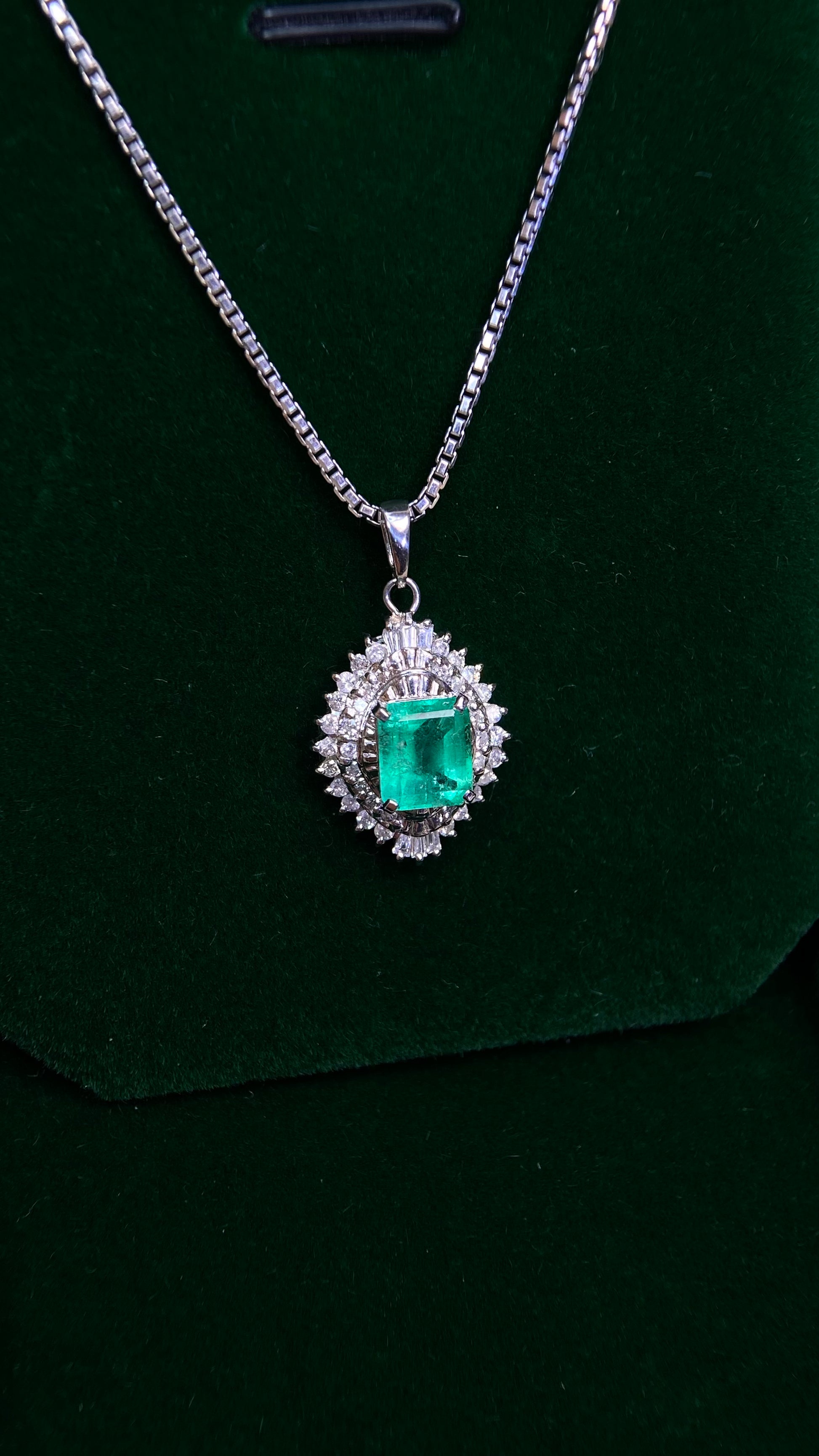 Pt900 platinum/Pt850 platinum&Emerald&Diamond Necklace| Emerald: 1.00ct|Diamonds:0.40ct|Japanese Vintage Estate Jewelry -BQNQ