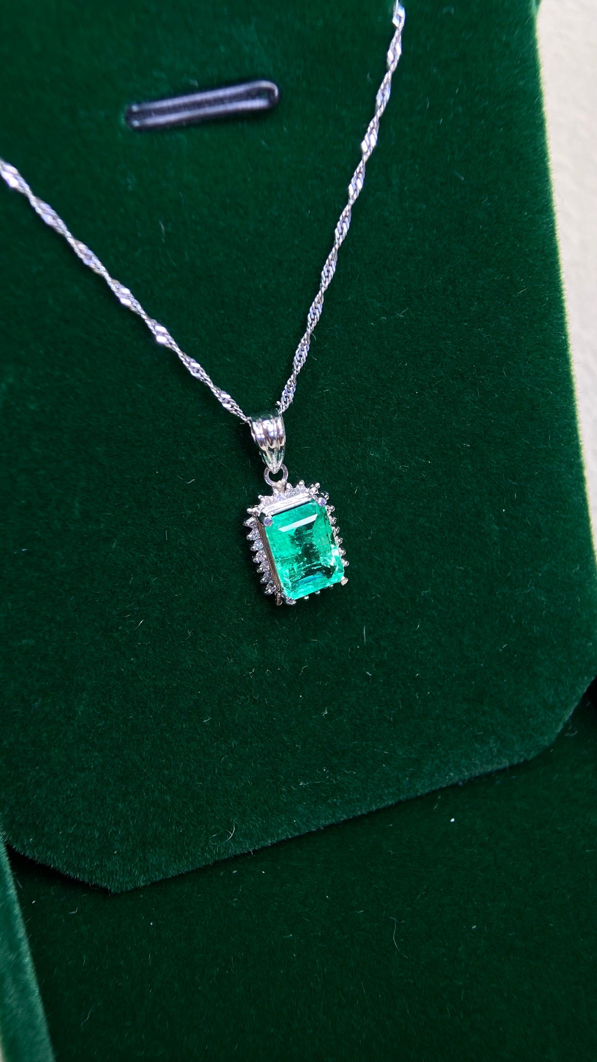 Pt900 platinum/Pt850 platinum&Emerald&Diamond Necklace| Emerald: 1.47ct|Diamonds:0.10ct|Japanese Vintage Estate Jewelry -BCHT