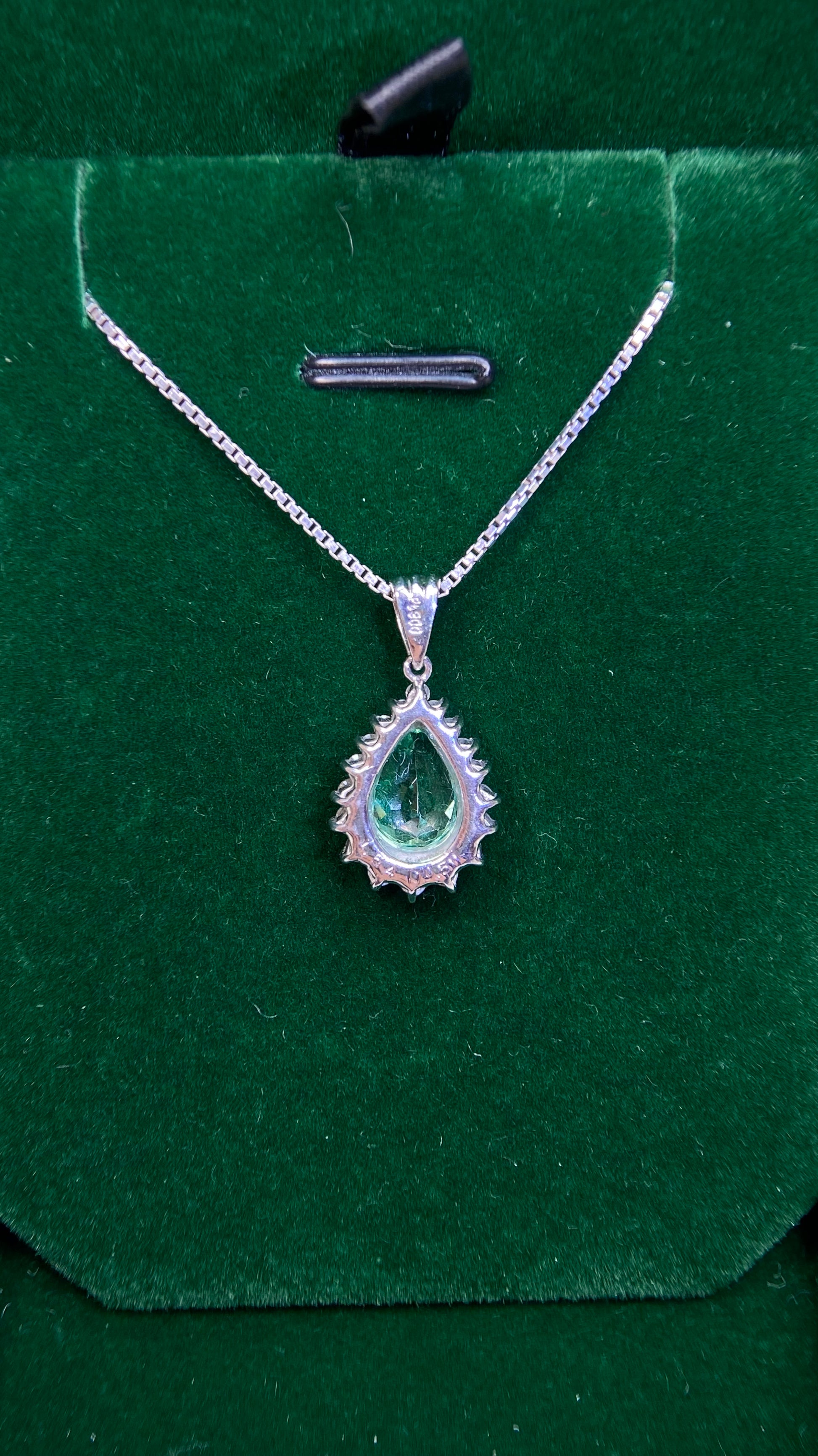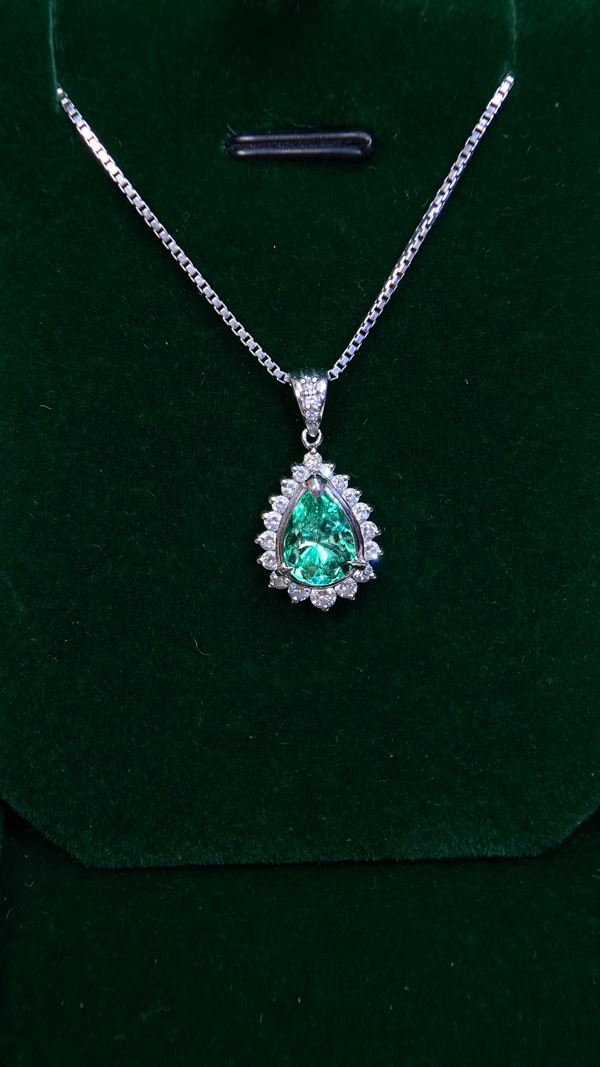 Pt900 platinum/Pt850 platinum&Emerald&Diamond Necklace| Emerald: 1.54ct|Diamonds:0.50ct|Japanese Vintage Estate Jewelry -BOUC