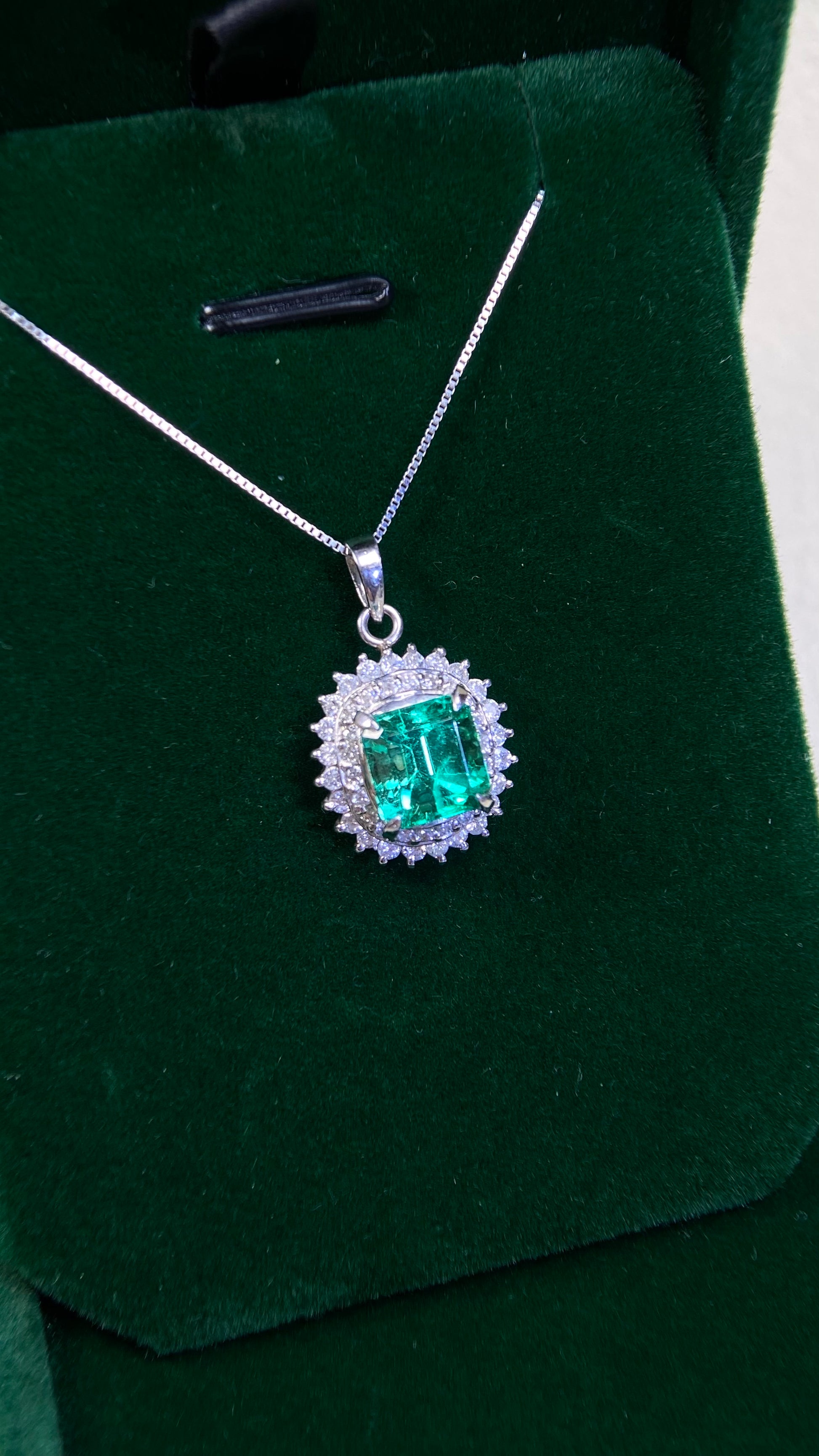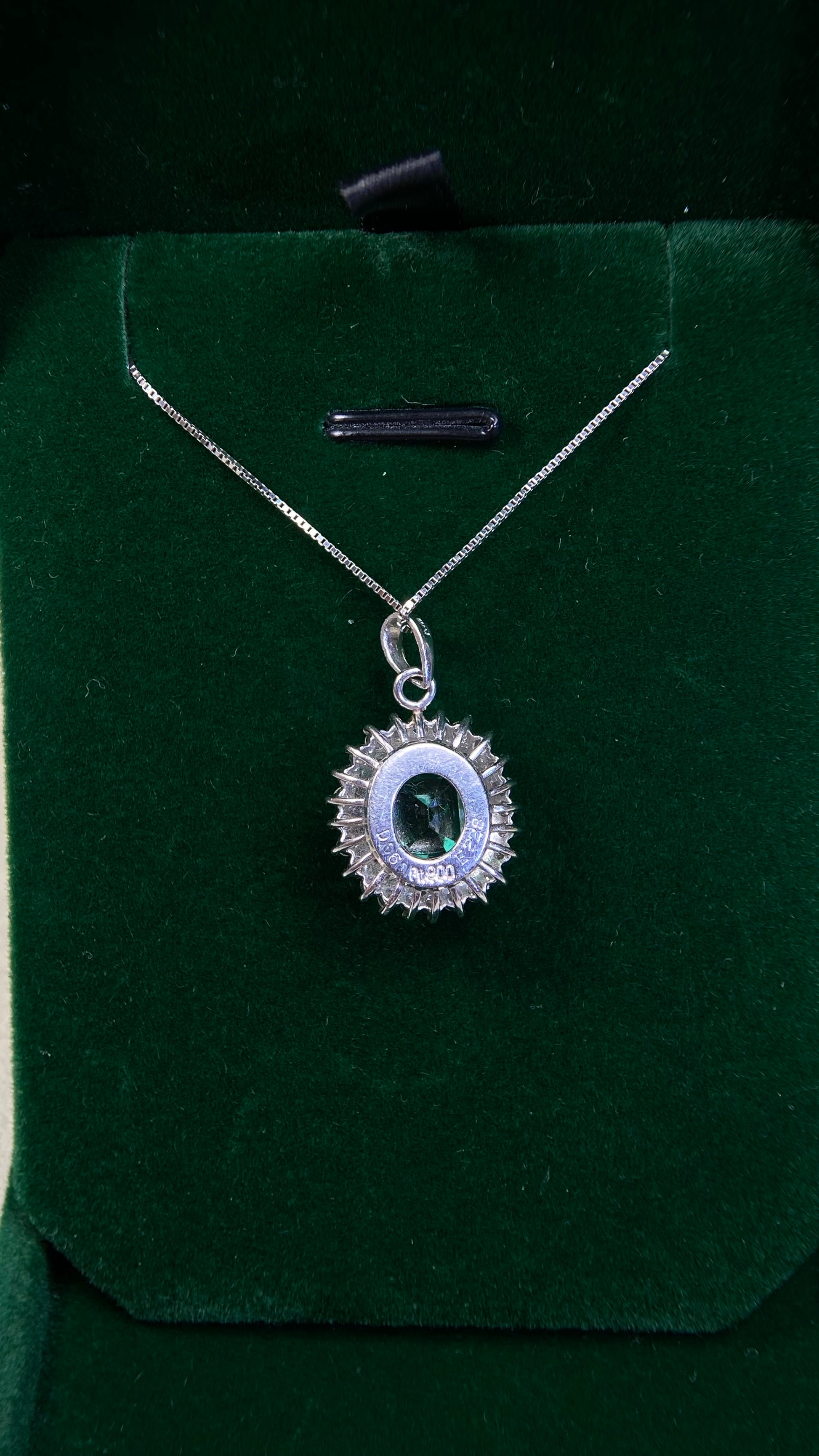 Pt900 platinum/Pt850 platinum&Emerald&Diamond Necklace| Emerald: 2.28ct|Diamonds:0.60ct|Japanese Vintage Estate Jewelry -ADIX