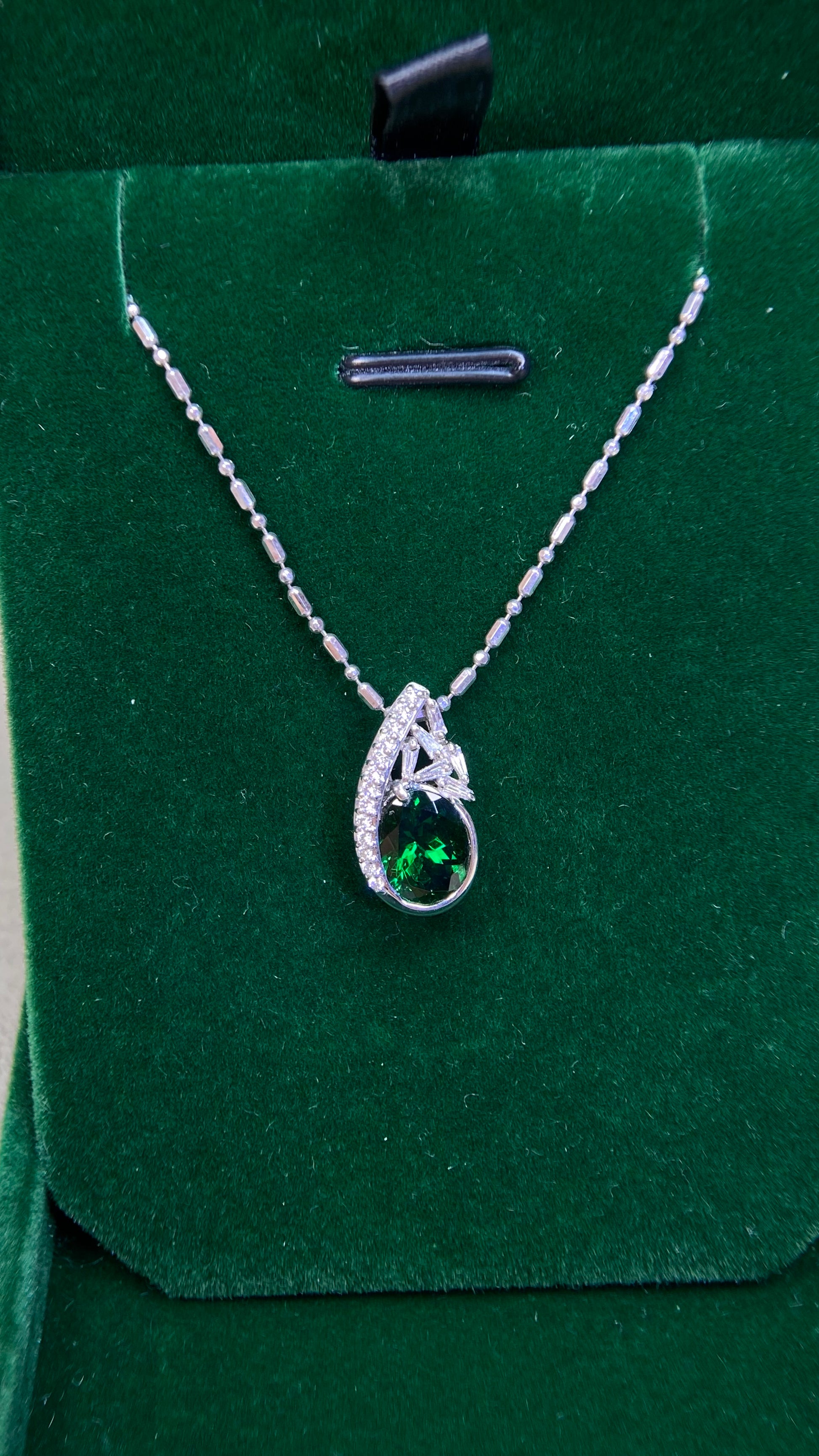 Pt900 Platinum/Pt850 Platinum&Tsavorite Garnet Necklace| Tsavorite Garnet: 1.96ct|Diamonds:0.14ct|Japanese Vintage Estate Jewelry -BOER