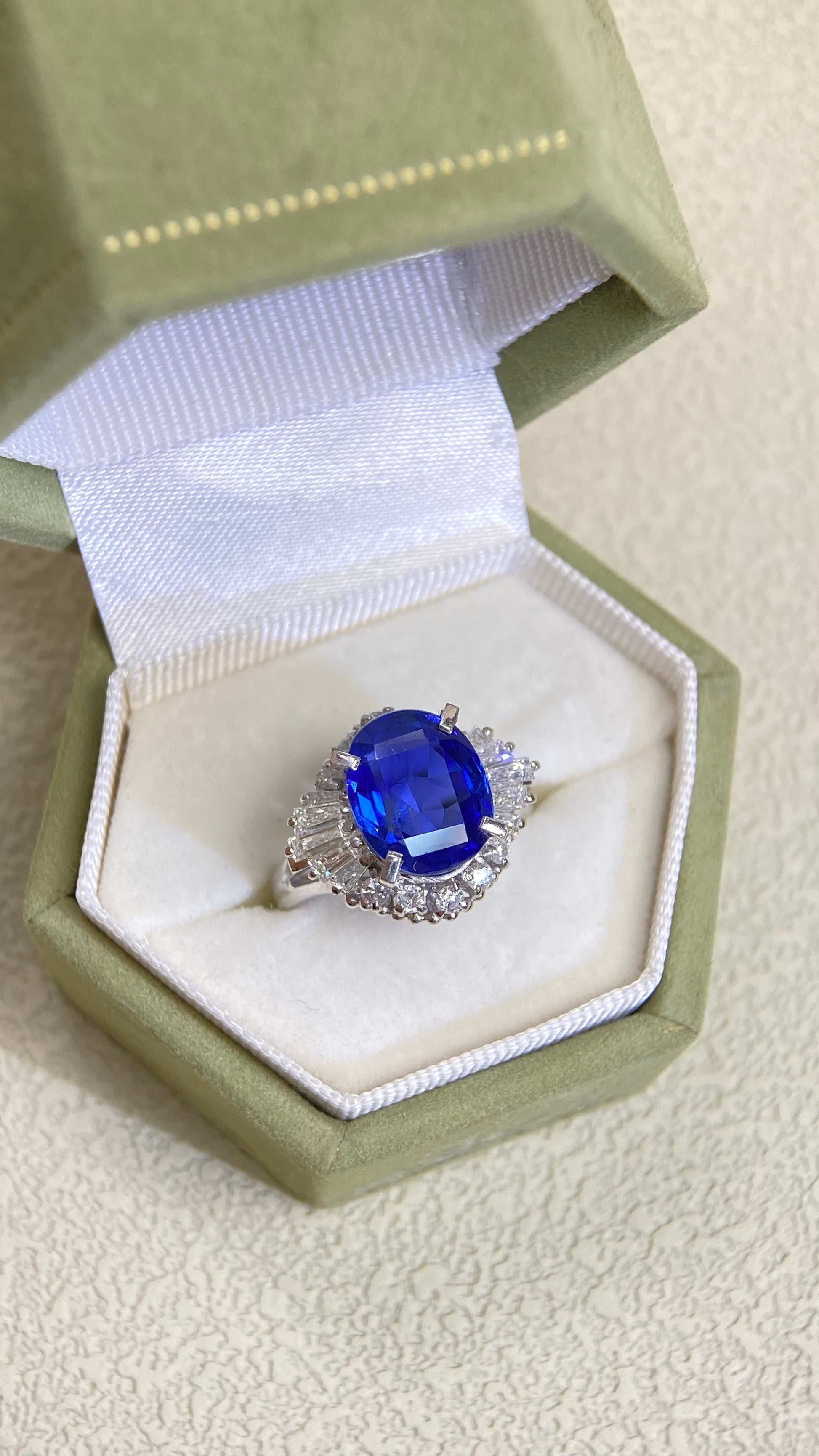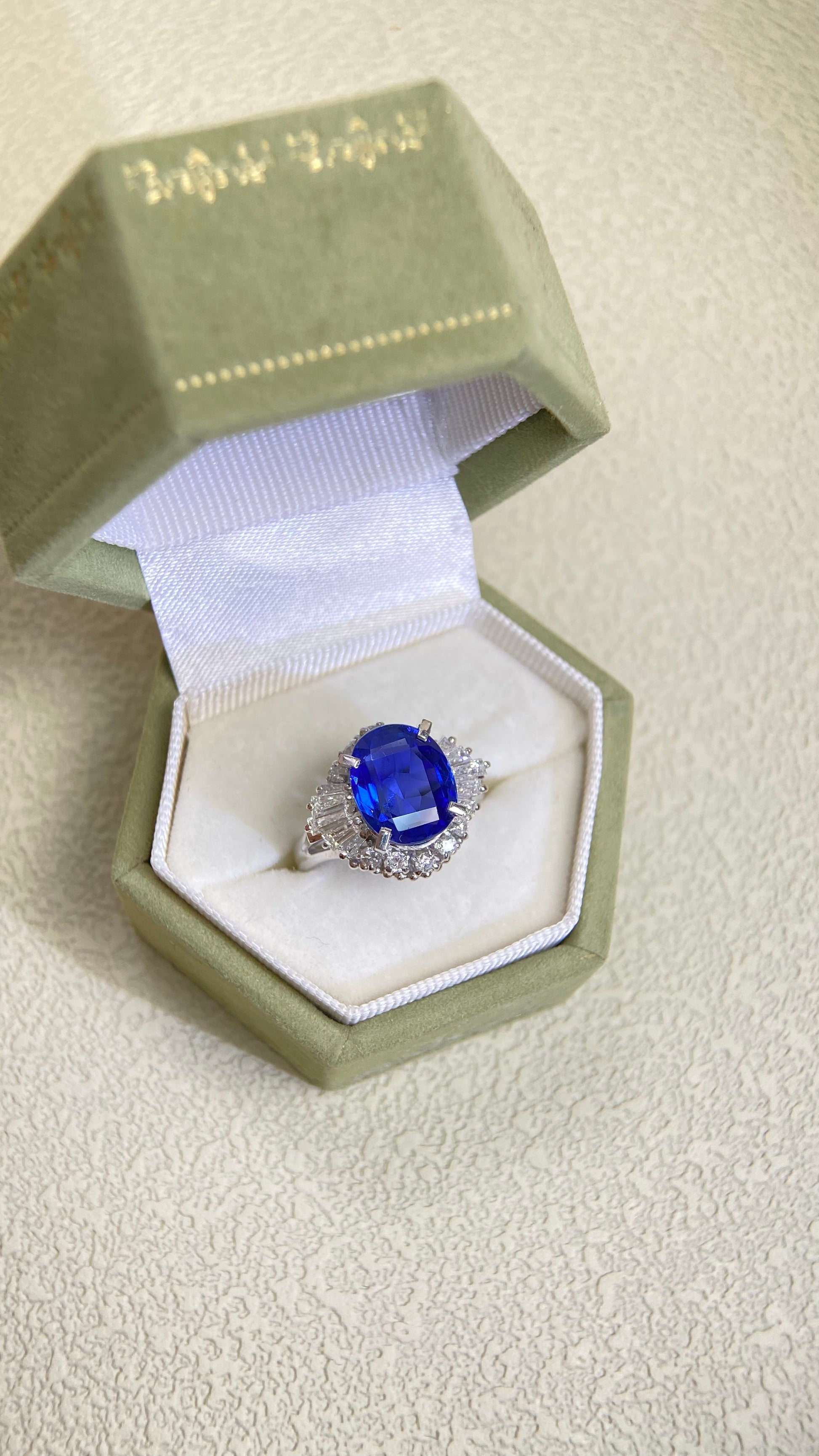 Pt900 Platinum&Sapphire and Diamond Ring | Sapphire 3.58ct | Diamond 0.77ct | No Heat-Sri Lanka | Japanese Vintage Estate Jewelry-BQQY