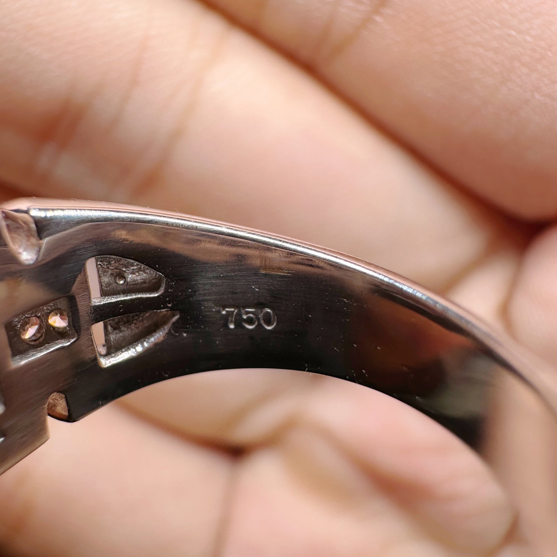 This striking vintage ring features a rare 2.01ct natural pink sapphire, set in a bold geometric cluster design and accented with 0.13ct of brilliant diamonds. Crafted in solid PT750 platinum and weighing approximately 9.2g, this piece combines architectural elegance with romantic femininity.