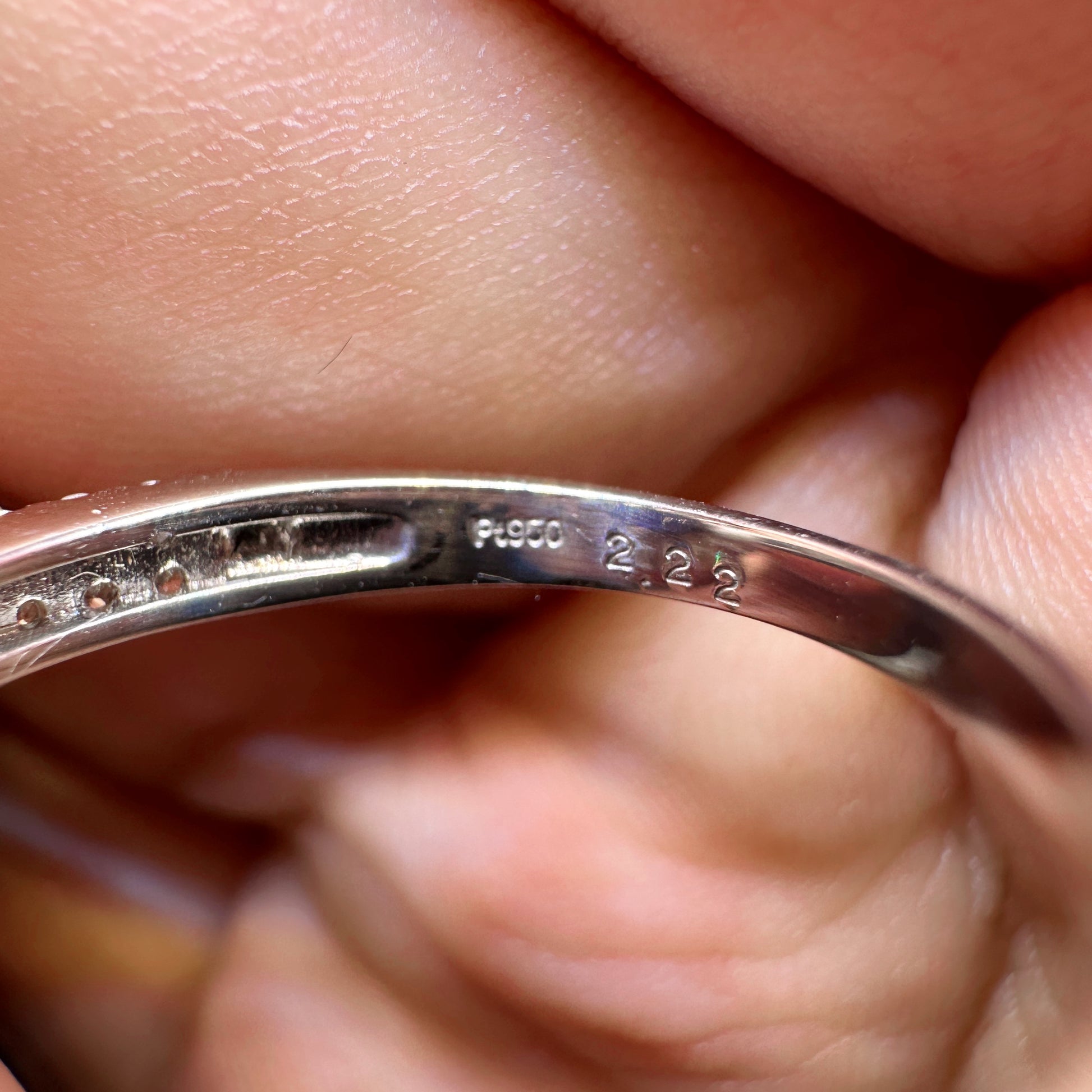 This exquisite vintage ring showcases a stunning 2.22ct natural blue sapphire at its center, beautifully framed by a total of 0.86ct of brilliant diamonds. Crafted in solid PT950 platinum and weighing approximately 6.98g, this piece radiates classic sophistication and timeless beauty.