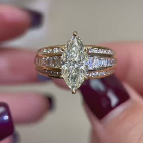 18K/750 Gold&Diamond Ring | Diamond2.390ct | Diamond 1.50ct | Japanese Vintage Estate Jewelry-XMJH