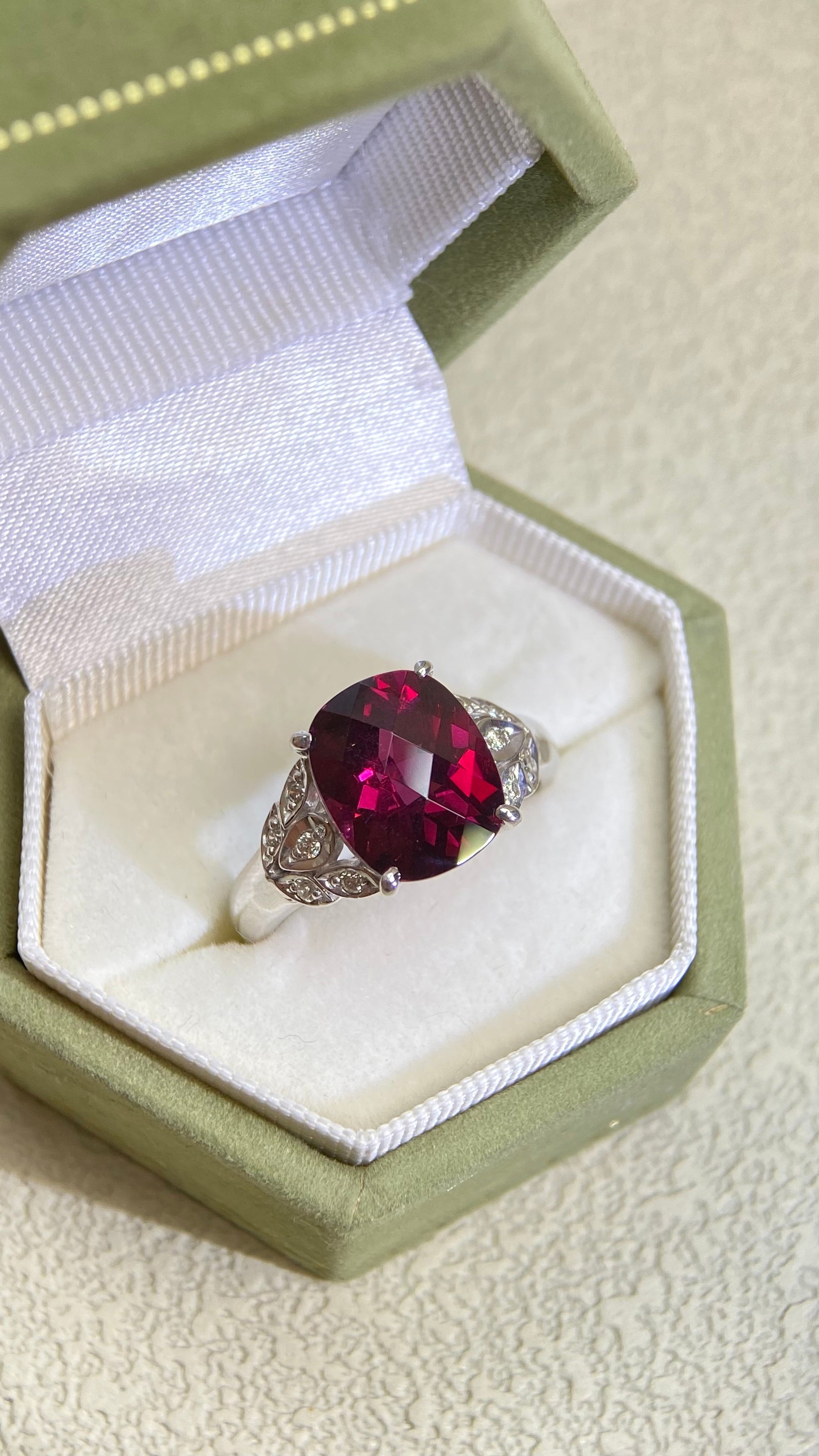 K18 White Gold&Rhodolite Garnet and Diamond Ring | Garnet 5.01ct | Diamond 0.10ct | Japanese Vintage Estate Jewelry-BPJC