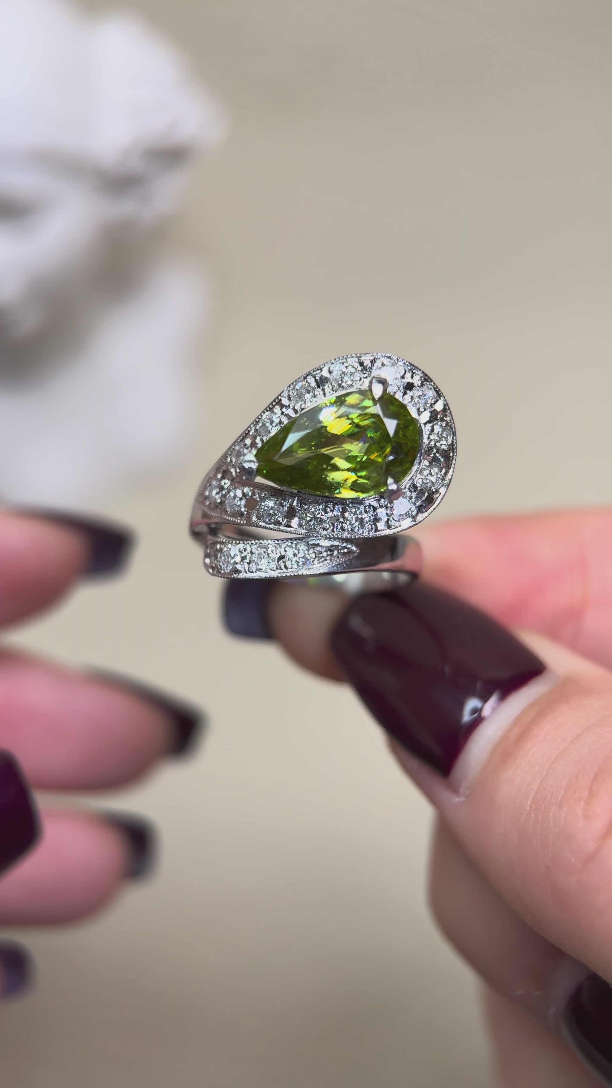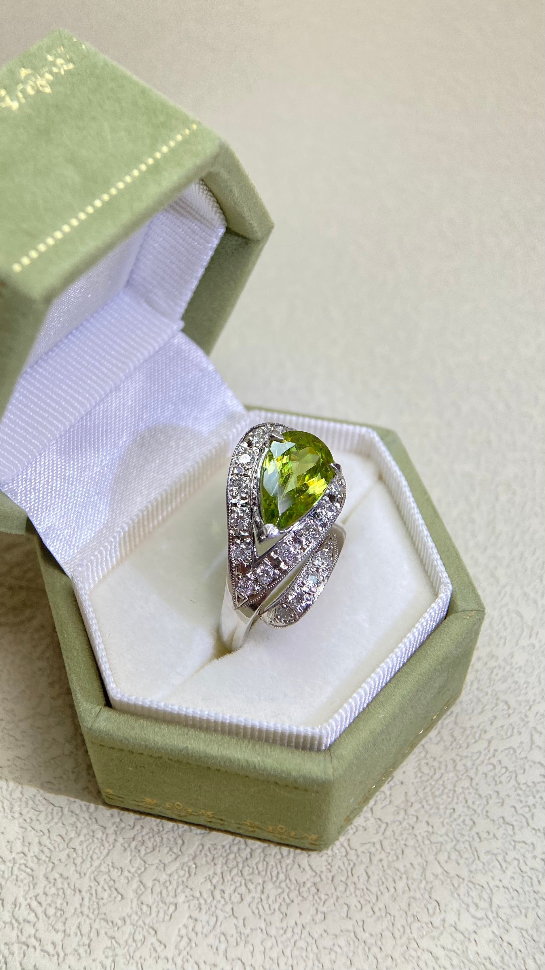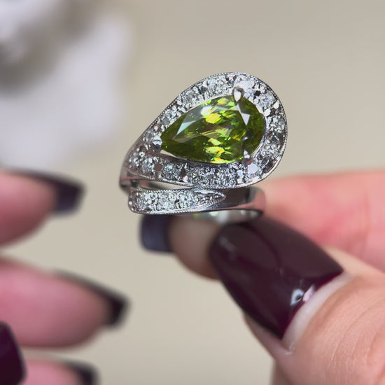 PM900 Platinum&Sphene and Diamond Ring | Sphene 2.60ct | Diamond 0.30ct | Japanese Vintage Estate Jewelry-BRBR
