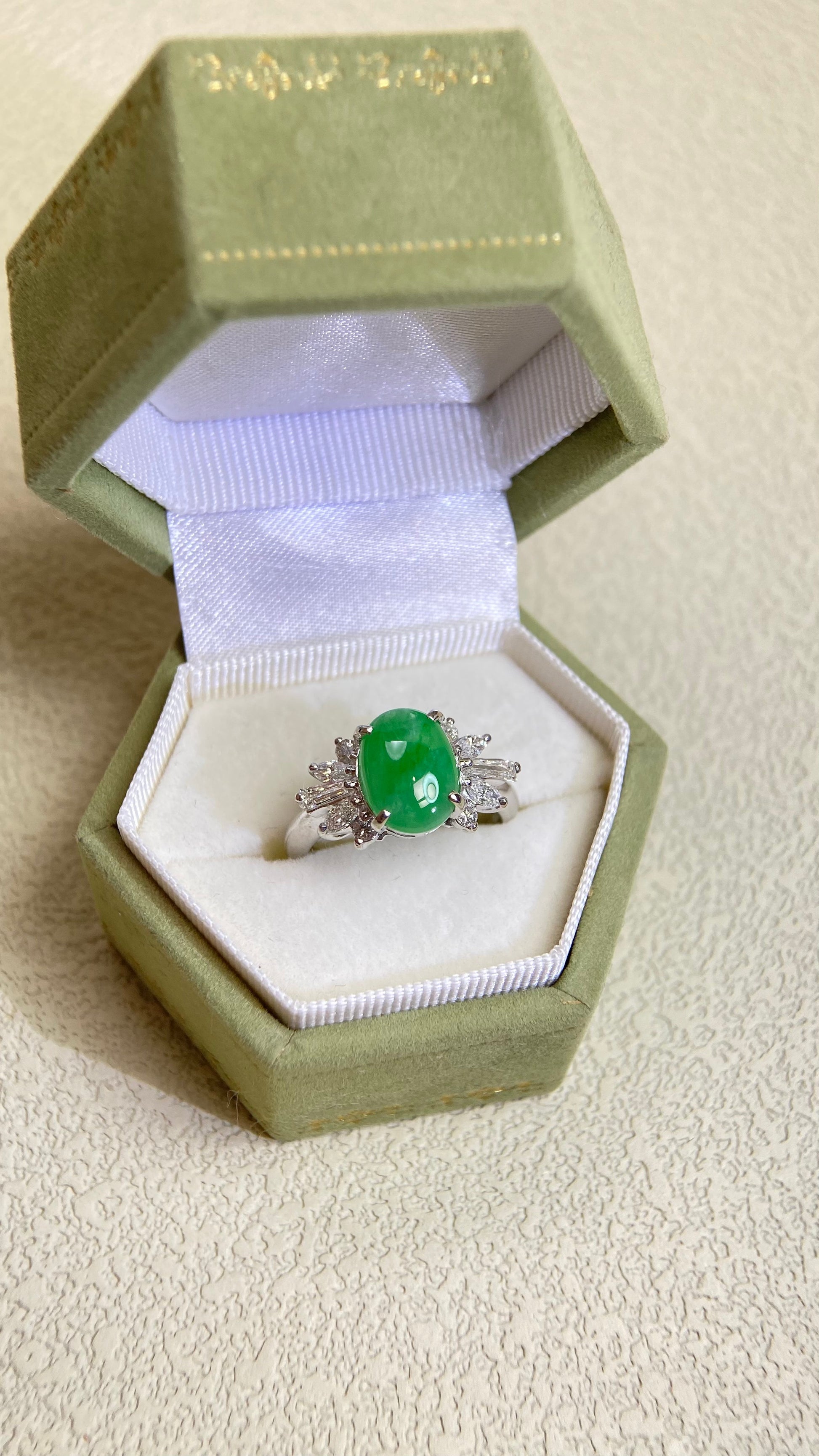 Pt900 Platinum&Jadeite and Diamond Ring | Jadeite 2.28ct | Diamond 0.52ct | Japanese Vintage Estate Jewelry-BHKQ