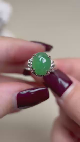 Pt900 Platinum&Jadeite and Diamond Ring | Jadeite 3.23ct | Diamond 0.08ct | Japanese Vintage Estate Jewelry-BPGF
