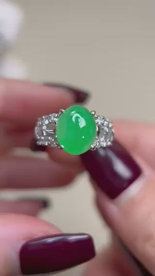 Pt900 Platinum&Jadeite and Diamond Ring | Jadeite 4.05ct | Diamond 0.59ct | Japanese Vintage Estate Jewelry-BJIL