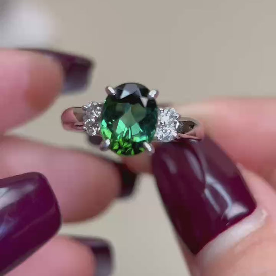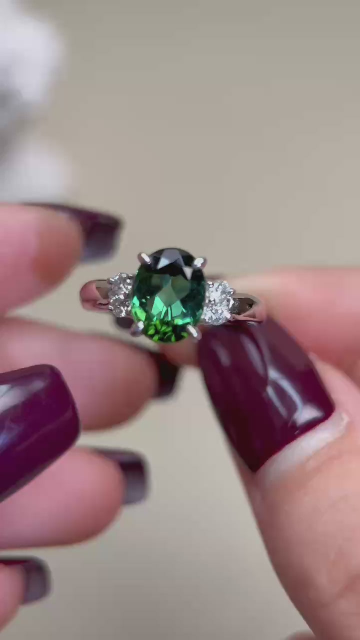 Pt900 Platinum&Tourmaline and Diamond Ring | Tourmaline 1.79ct | Diamonds 0.16ct | Japanese Vintage Estate Jewelry-BPRM