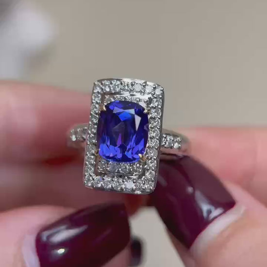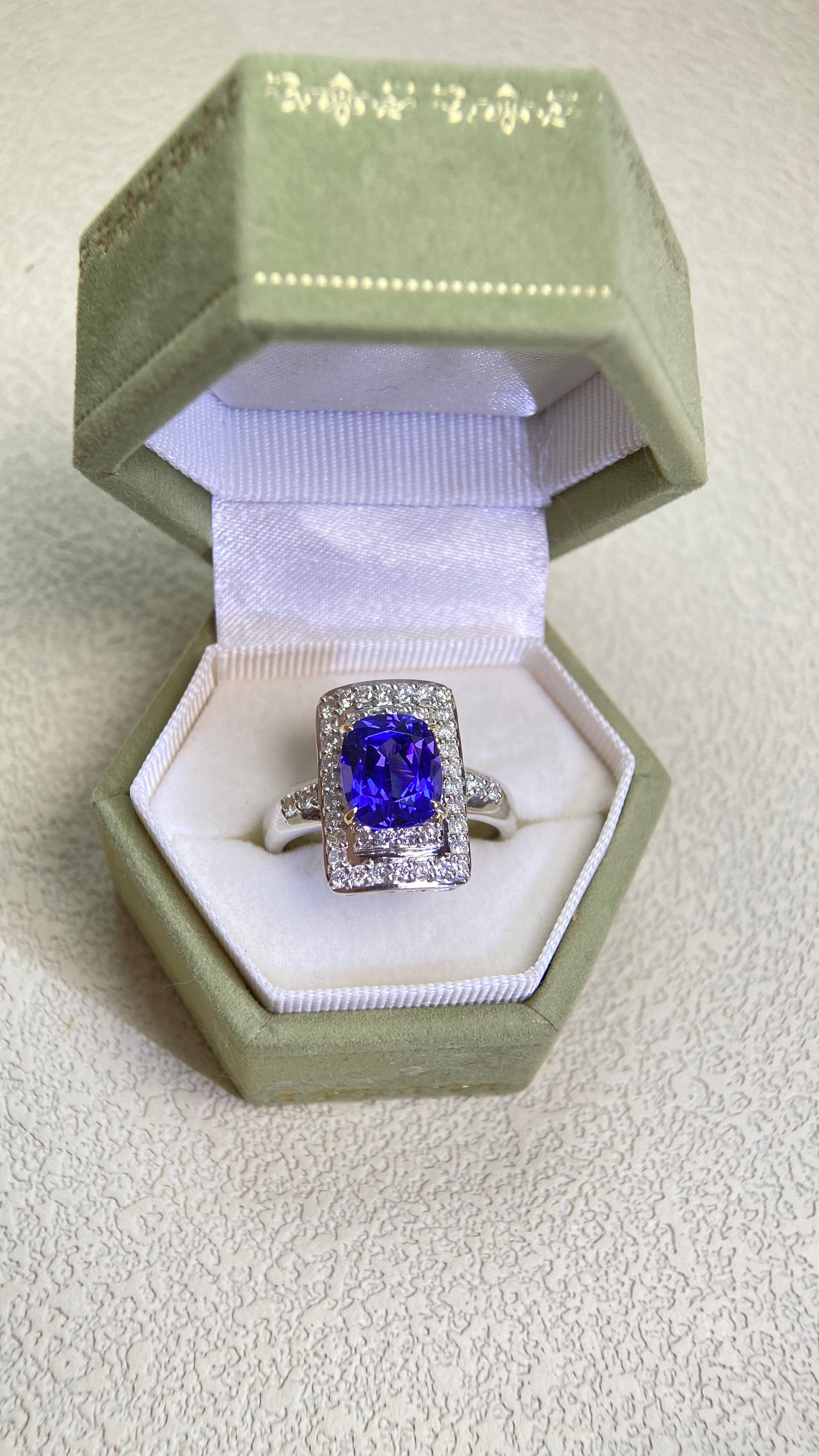 K18 Gold/Pt900 Platinum&Tanzanite Ring | Tanzanite 3.37ct | Diamonds 0.74ct | Japanese Vintage Estate Jewelry-BNZI